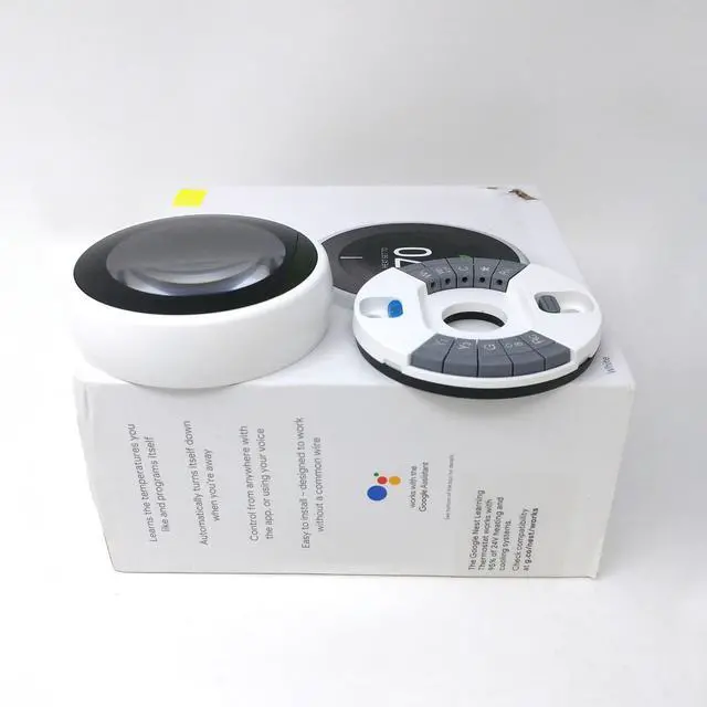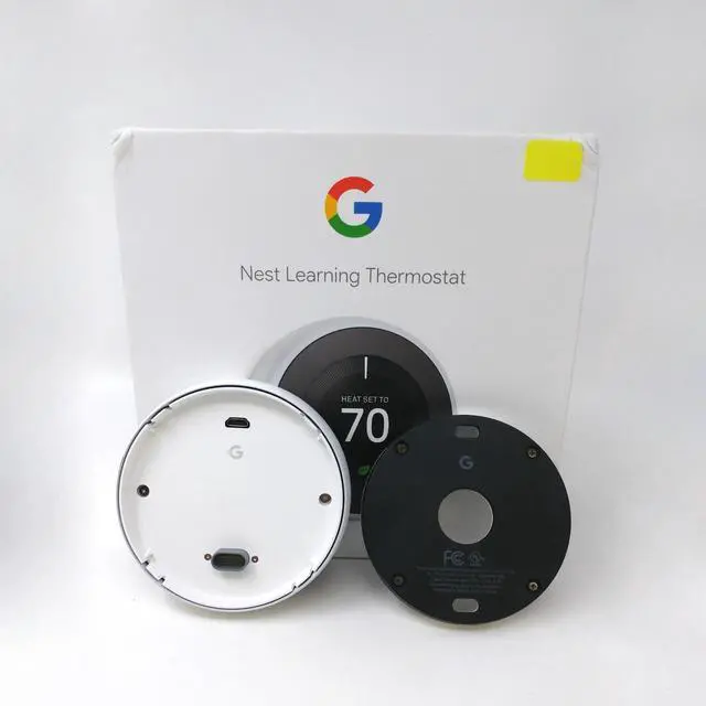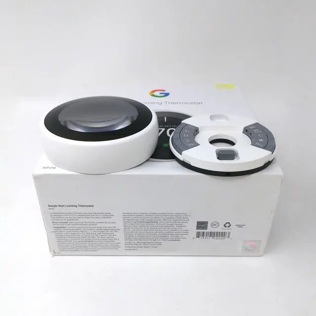 The 3rd generation Learning Thermostat from Nest in white adapts to your heating and cooling preferences within a week of installation and can automatically create schedules. This thermostat features built-in Wi-Fi connectivity and can be conveniently controlled via the Nest app for Android and iOS smart devices. It has a 2.1" display with a 480 x 480 resolution that can automatically sense when you're in the room. When your presence is detected, it automatically lights up to display the current time and temperature. With Auto-Away technology, the thermostat can turn itself down when no one is home, conserving energy in the process. It's compatible with a wide variety of heating and cooling systems and features a built-in rechargeable battery.