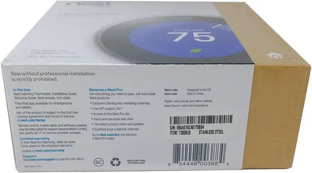 Connection requirements: Wi Fi connections with Internet access, smartphone or tablet with iOS 8 or later or Android 4 or later, as well as free Nest account