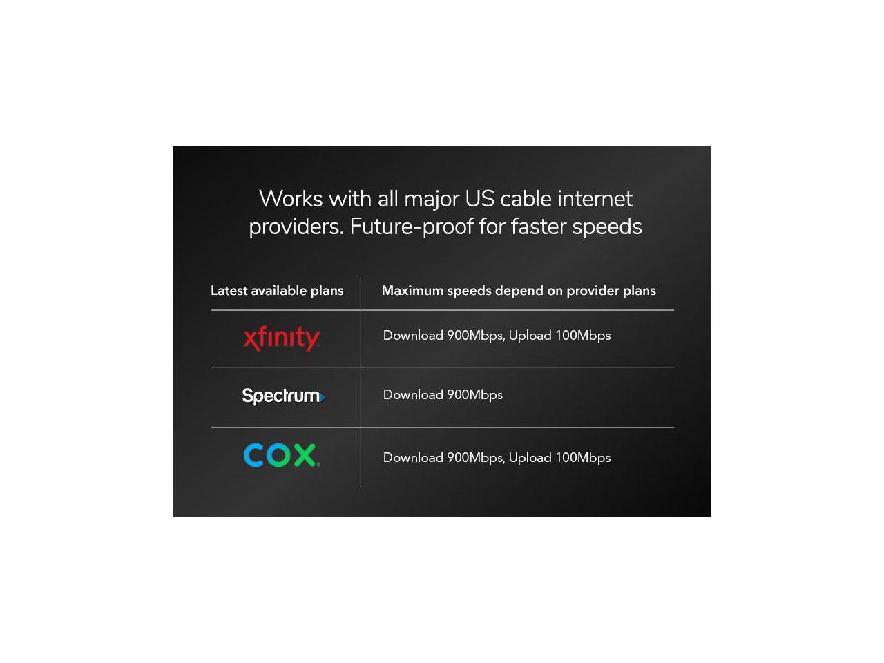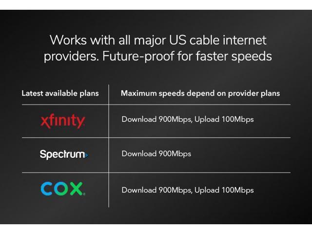 - Unlock faster cable internet speeds that can only be accessed with the latest DOCSIS® 3.1 mid/high-split technology