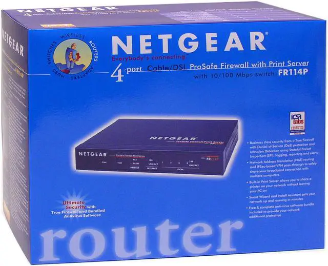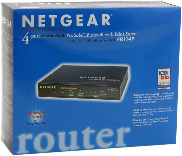 | Features | Administration Interface: Web-based graphic user interface, user name and password protected. Smart Wizard and Auto Detect for basic parameter settings. Remote management support authenticated through IP address or IP address range, and password Configuration and Upgrades: Upload and download configuration settings, field upgradeable flash memory RFC Support: PPTP client and server (RFC 2637) IPSec tunnel mode (pass through mode), IP v.4 (RFC 2401) DHCP server (RFC 2131) DHCP client (RFC 2131) IP routing (RIP1, RIP2) (RFC 2453) NAT (many-to-one) (RFC 1631) IP control Protocol (RFC 1332) PPPoE (RFC 2516) Functions:Smart Wizard to automatically detect ISP Address type (static, dynamic, PPPoE), Port Range Forwarding, Exposed Host (DMZ), Enable/Disable WAN Ping, DNS Proxy, MAC Address Cloning, NTP support, URL Content Filtering, E-mail Alerts, DHCP Server (Info and display table), PPPoE login client support, WAN DHCP Client, Diagnostic tools (ping, DNS lookup, other) Maintenance: Save/Restore Configuration, Restore Defaults, Upgrades via Web Browser, Display Statistics, Logging Ultimate Security with True ICSA-certified Firewall Thoroughly Protected Business Class Security User Friendly Flexible & Durable |