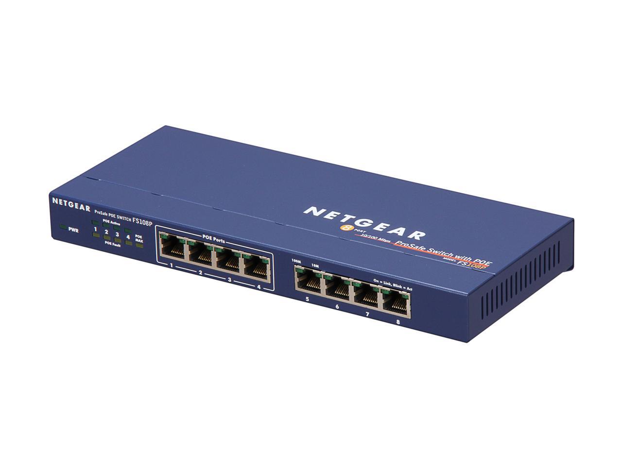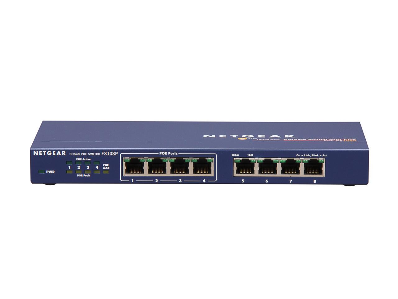 NETGEAR 8 Port Fast Ethernet Unmanaged Switch, 4xPoE 56W, ProSAFE Lifetime Protection (FS108P)