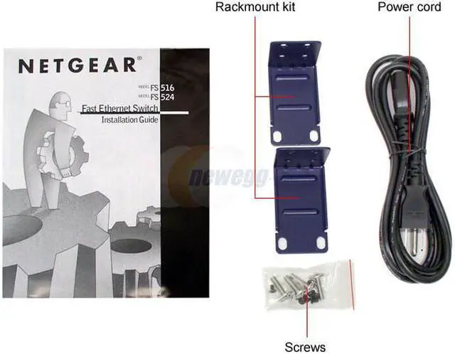 | Package Contents | FS524 Installation Guide Rack mount kit Screws Power Cord |