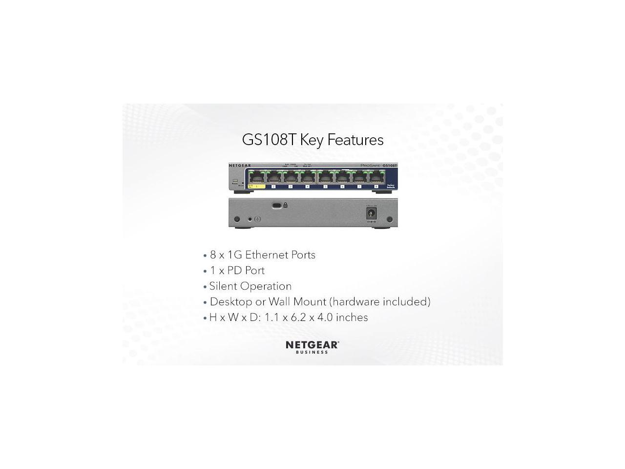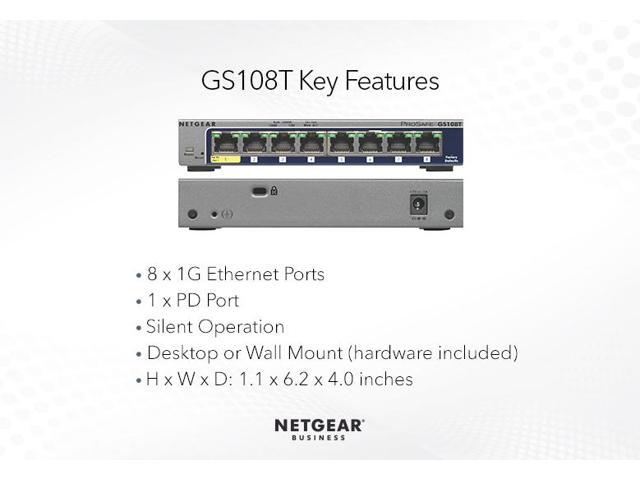 Netgear ProSafe GS108T 8-Port Gigabit Ethernet Smart Switch, GS108T-300NAS