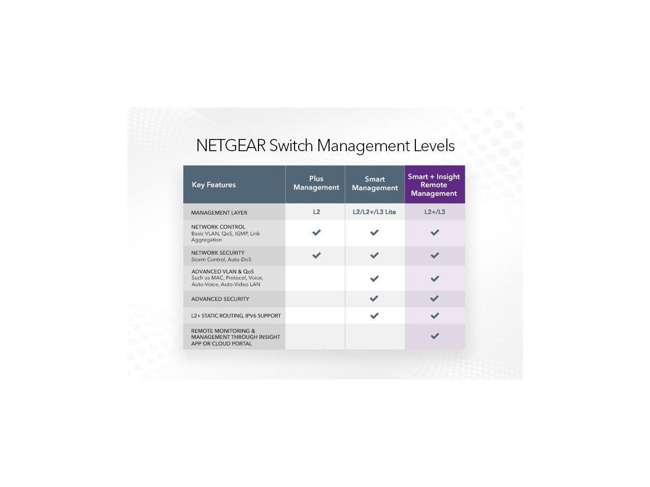 - Fully-integrated Cloud-manageable Devices: Remote/Cloud management capability with NETGEAR Insight