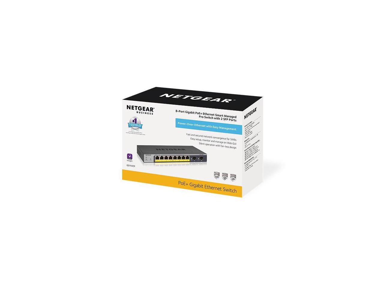 Netgear ProSafe GS110TP 8-Port Gigabit PoE+ Ethernet Smart Switch with 2 SFP Ports and Cloud Management (55W), GS110TP-300NAS