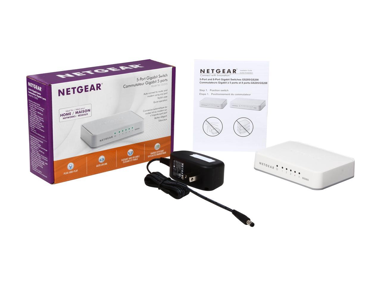 NETGEAR 5-Port Gigabit Ethernet Unmanaged Switch, Desktop, 10/100/1000Mbps (GS205)
