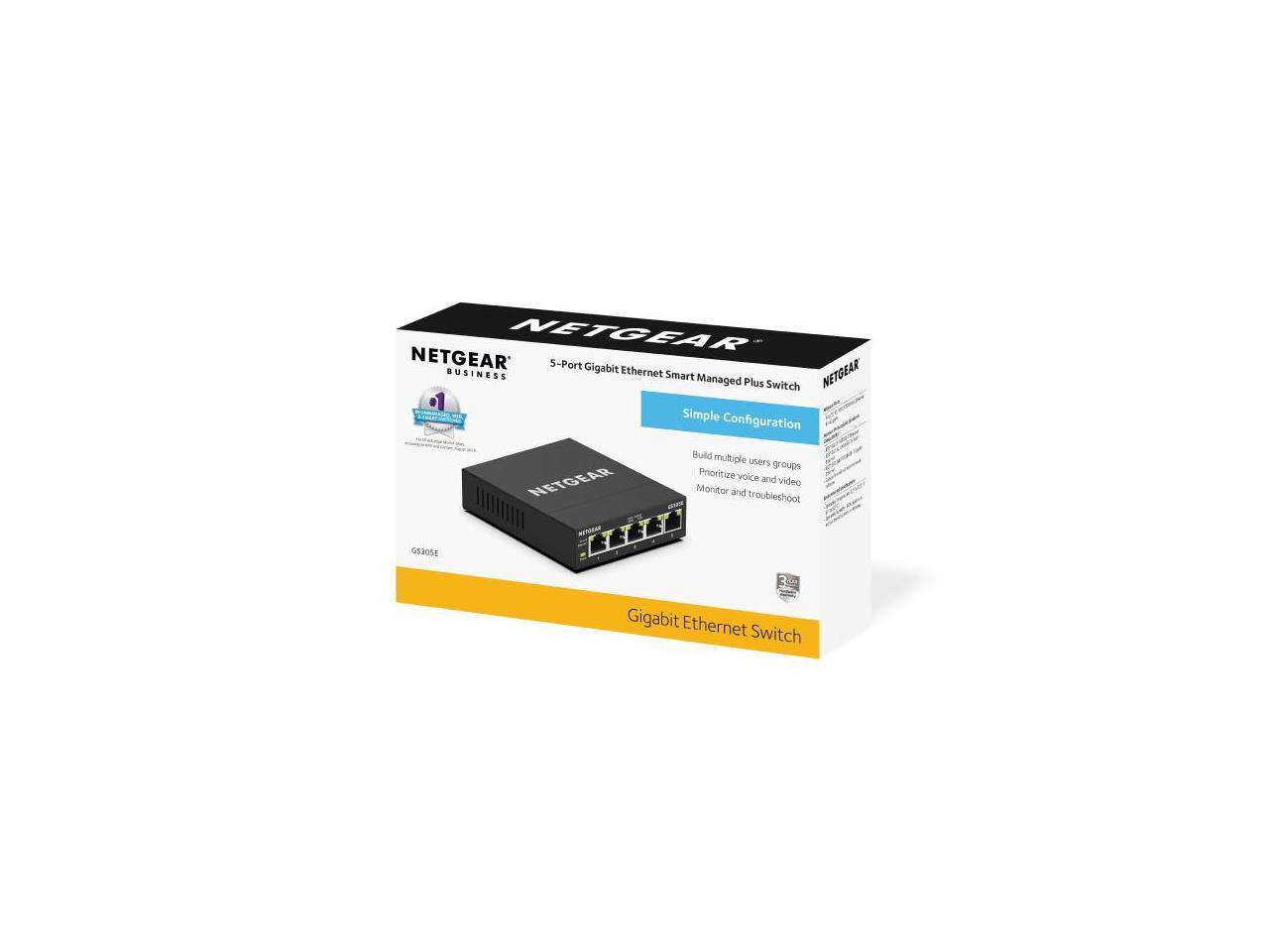 Netgear GS305E 5-Port Gigabit Ethernet SOHO Plus Easy Smart Managed Essentials Switch, GS305E-100NAS
