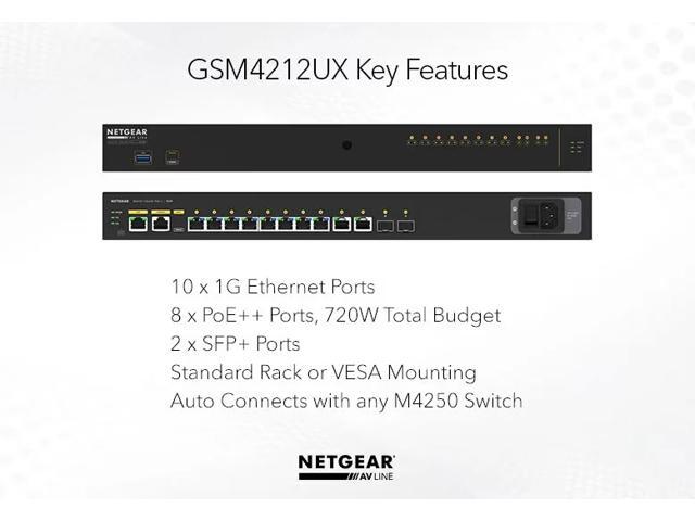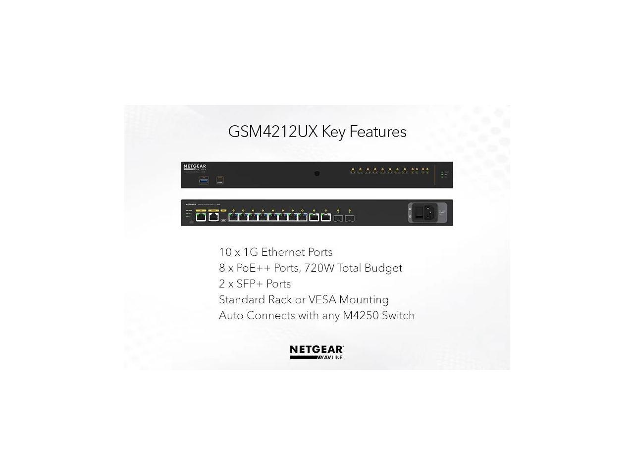NETGEAR 8x1G PoE+ 240W 2x1G and 2xSFP+ Managed Switch | AV Line M4250-10G2XF-PoE+, GSM4212UX-100NAS