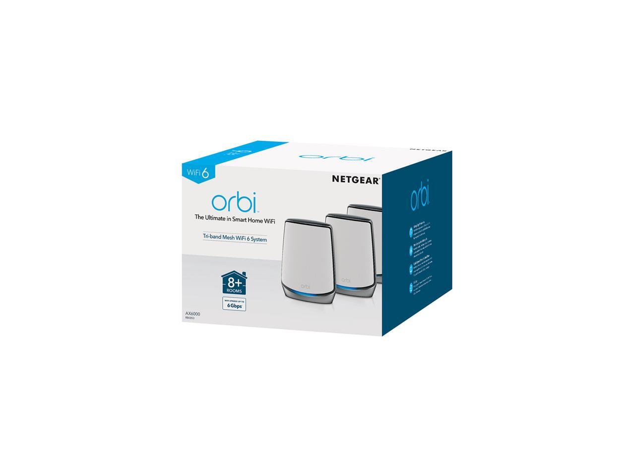 NETGEAR Orbi Whole Home Tri-Band Mesh WiFi 6 System (RBK853) - Router with 2 Satellite Extenders | Coverage Up to 7,500 Sq. ft. and 60+ Devices | Tri-Band AX6000 WiFi (Up to 6Gbps)
