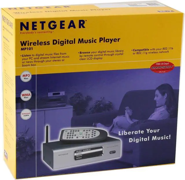 | Features | Streams and plays MP3s and Windows Media format digital files from all of your networked PCs directly to your home stereo Listen through your stereo, boom box, headphones, or powered speakers Remote control and vivid LCD interface for easy browsing of music collection Compatible with 802.11b or 802.11g wireless networks vTuner Internet Radio now available with 50 radio stations for free and 1000 more worldwide stations to subscribe to |