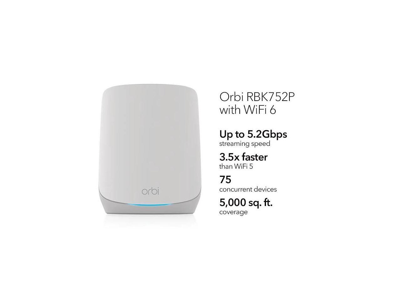 Netgear Orbi 750 Series Tri-Band WiFi 6 Mesh System, 5.2Gbps, 3-Pack Including 1 Router + 2 Satellites, RBK753P-100NAS