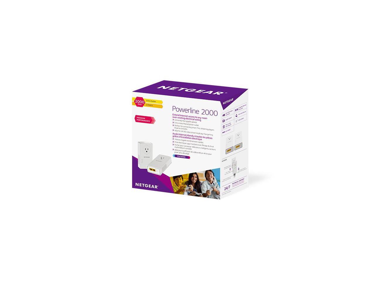 Netgear Powerline 2000 Extender, 2000Mbps, Wall-plug , Extra Outlet, 2 Extenders, PLP2000-100PAS