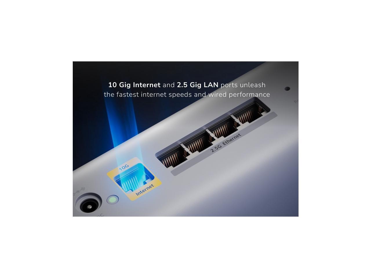 - 4 x 2.5 Gbps Ethernet ports unlock unbeatable speed and reliability for wired connections and 2.5 Gbps wired backhaul option