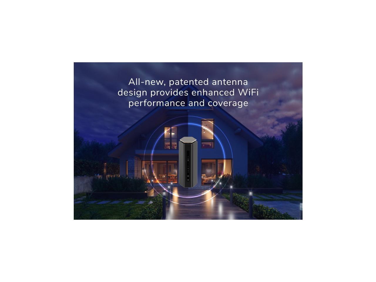 - Sleek new body with smaller footprint and high-performance antennas for up to 2,000 sq. ft. of WiFi coverage
