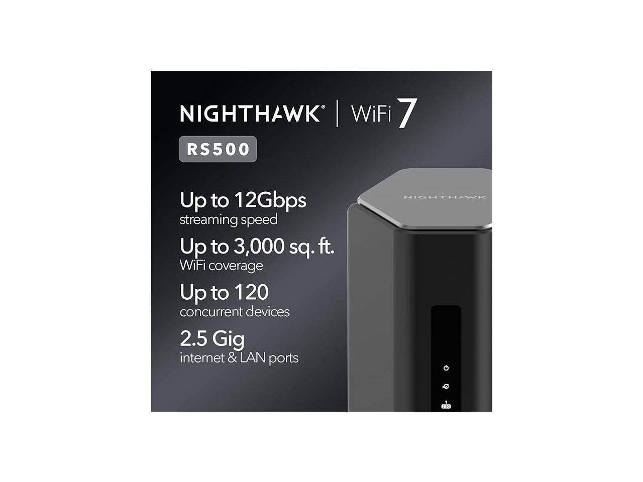 Netgear Nighthawk RS500 Tri-Band WiFi 7 Router, BE12000 Wireless Speed (up to 12Gbps), RS500-100NAS