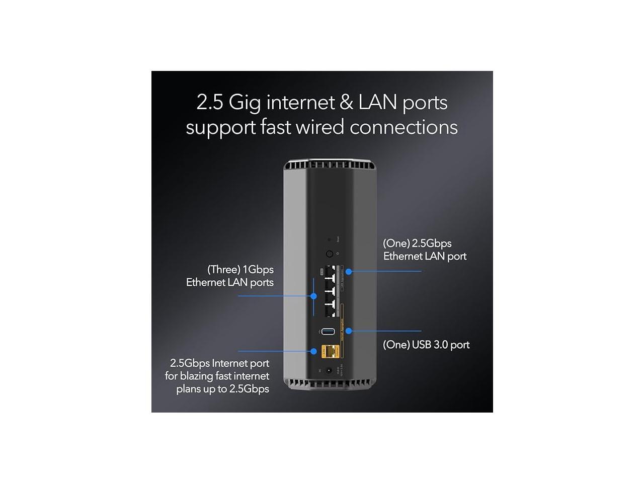 - Reimagined Speed & Reliability: Whether multi-gig cable or fiber, get the fastest speeds available today with a 2.5 Gig internet port. 2.5 Gbps & 1 Gbps Ethernet ports unlock unbeatable speed and reliability for wired connections