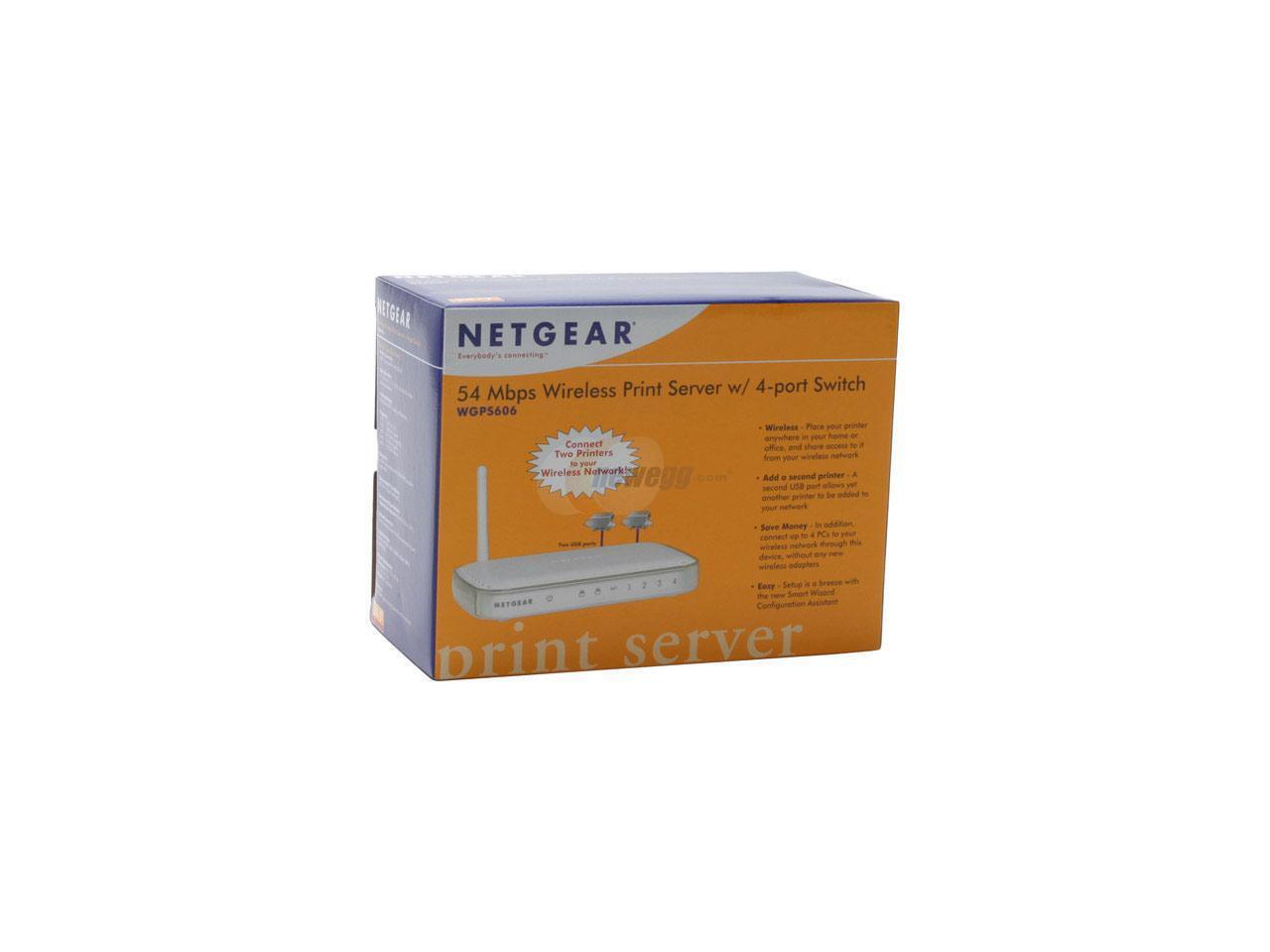 NETGEAR WGPS606 54 Mbps Wireless Print Server 802.11b/g, 4 x RJ-45 USB 1.1