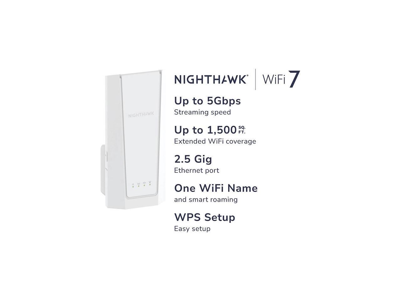 Netgear BE5000 Nighthawk WiFi 7 Dual-Band Extender, EXS27-100NAS