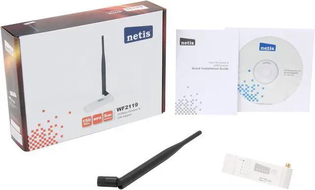 The Netis WF2119 150Mbps Wireless N USB Adapter is designed to connect a desktop or notebook computer to a wireless network to access high-speed Internet. It's compatible with 802.11 b/g/n devices and provides wireless transfer speeds up to 150Mbps, offering better performance on web surfing, emailing, file sharing, and online chatting. It features with a 5dBi detachable antenna, providing better coverage and allowing for stronger antenna upgrades. Moreover, you can easily setup a secure wireless connection in a snap with the WPS button.