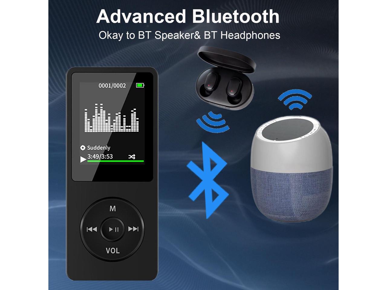 - Bluetooth MP3 Player: This MP3 Player supports Bluetooth function and allows you to pair with Bluetooth speaker or Bluetooth earphones to enjoy wireless playing, which is more convenient.