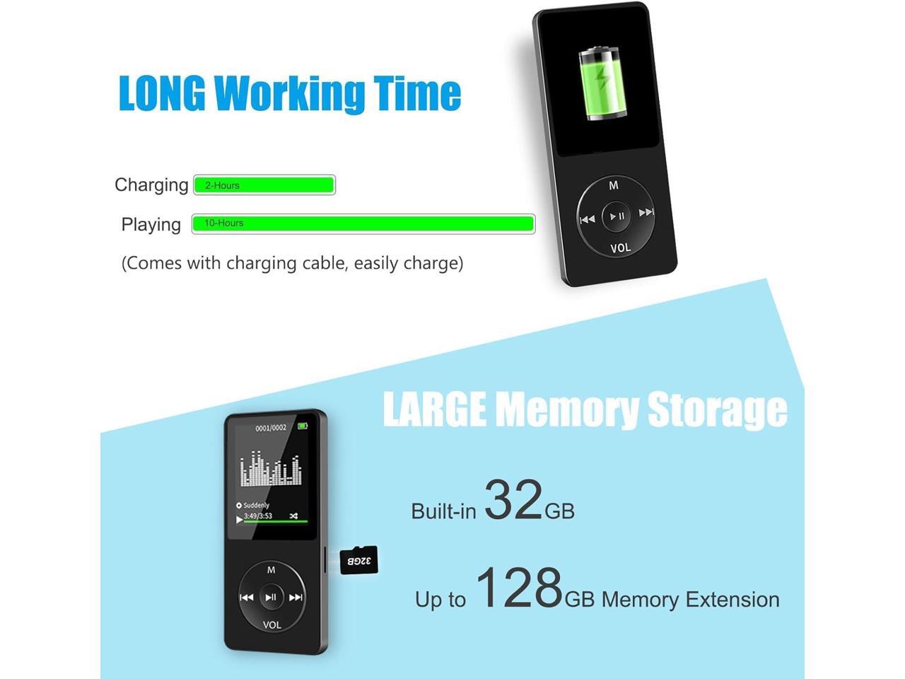 - Large Memory Storage: Built-in 32GB micro SD card which could store more than 5000 songs. If want higher-capacity, you could replace it with a 128GB TF card to store more songs and videos.