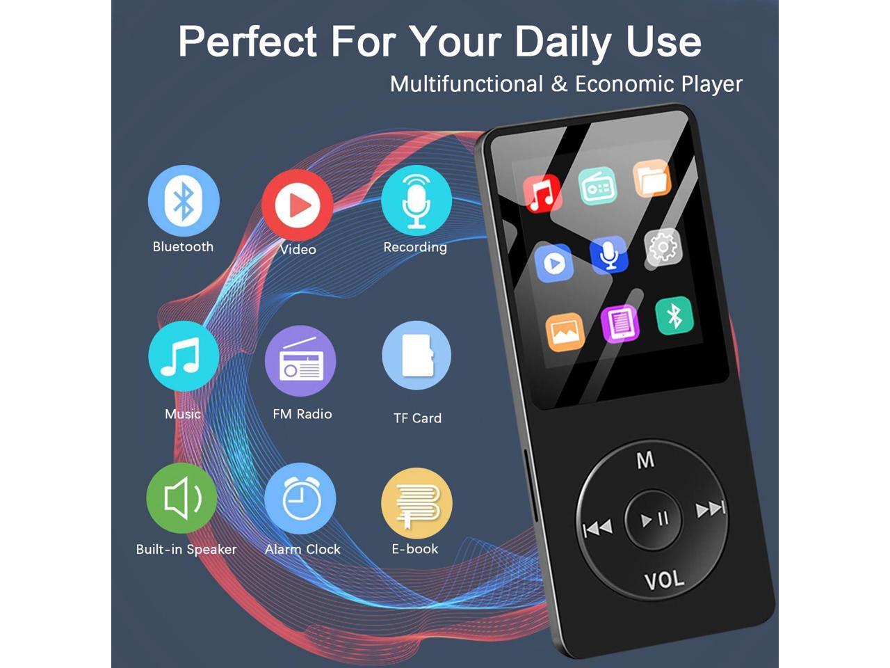 MP3 Player with Bluetooth, Mini 32GB MP3 Music Players with Speaker, Supports Alarm Clock, FM Radio, Recording Function, Up to 128GB Memory Storage, Earphones Included