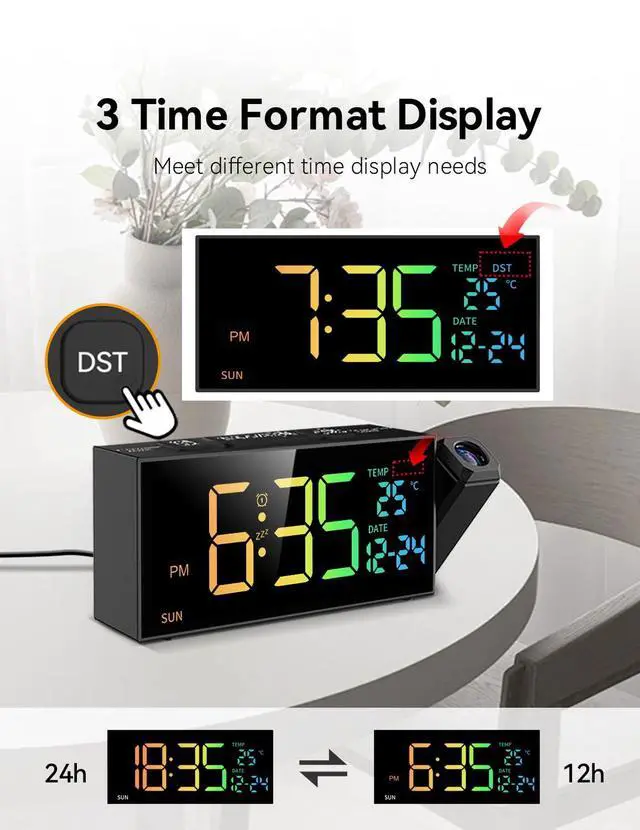 Manual DST Adjustment Feature - Simply hold down the DST button to move the alarm time forward by an hour when Daylight Saving Time starts, and backward by an hour when it ends. This convenient feature keeps your clock in sync with the changing seasons effortlessly.