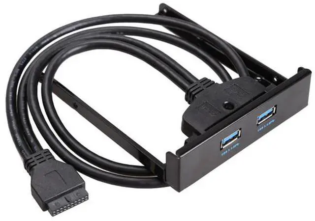 Specifications 2 USB 3.0 type-A female ports Data transfer rate up to 5Gbps Copper conductor for maximum conductivity and reliability High density double shielding for maximum rejection of EMI and RFI Plug and play driver less installation Backward compatible with USB 2.0 and 1.1 Fits inside 3.5 inches open bay Cable length: Approx. 50cm Front panel color: Black