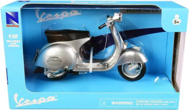 Brand new 1/12 scale diecast motorcycle model of Vespa 150 GS Silver Metallic die cast motorcycle model by New Ray.