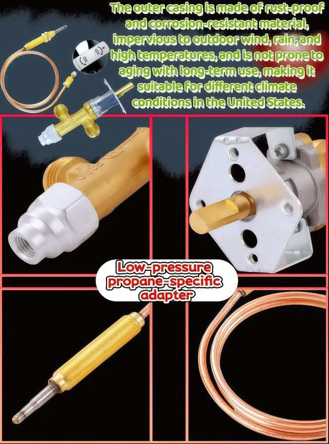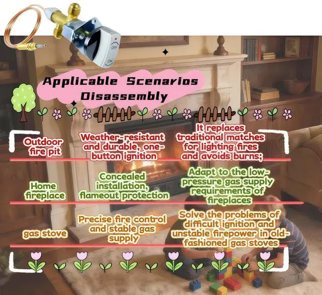 4, This low-pressure LPG propane gas fireplace fire pit flame fail-safe control valve kit is easy to install,Installed vertically at the opening of the equipment container. Secure the safety control valve with screws through four threaded holes