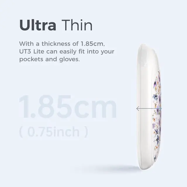 Ultra Light, Ultra Thin, Ultra Value: The UT3 Lite is super slim; Each hand warmer measures just 1.8cm when split, easily fitting into pockets and even slipping comfortably into gloves; And here's the surprise it's lighter than your phone, a whopping 40% lighter