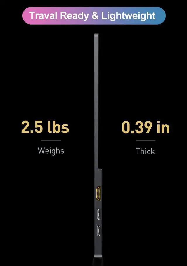 [Handy for Traveling] Lite weight and thin making this portable monitor easy for traveling professionals and plug and play makes it easy to put wherever you want. No need to install any extra drivers. While 15.6inch may be too small, this 18.5inch will