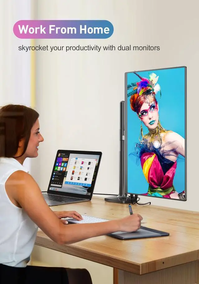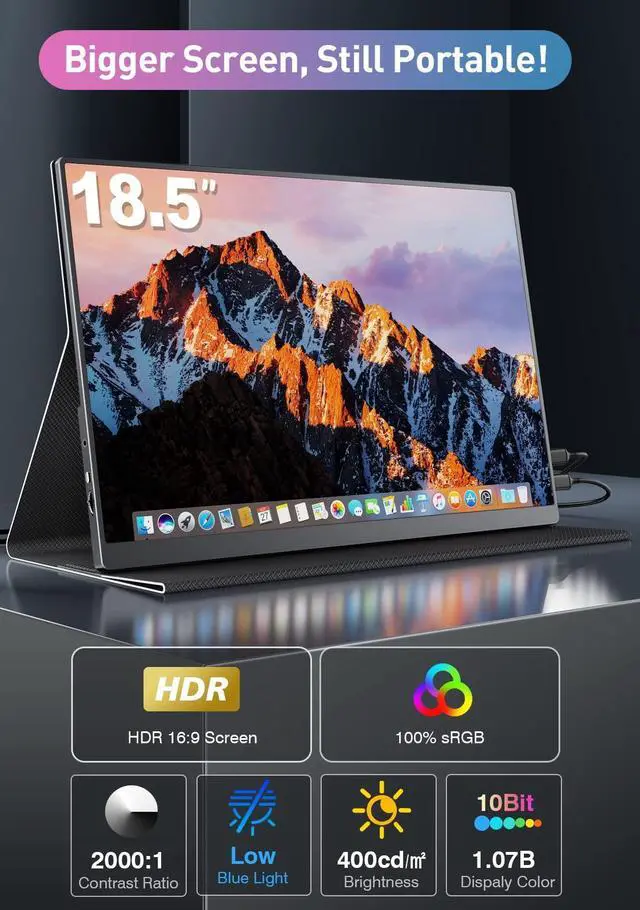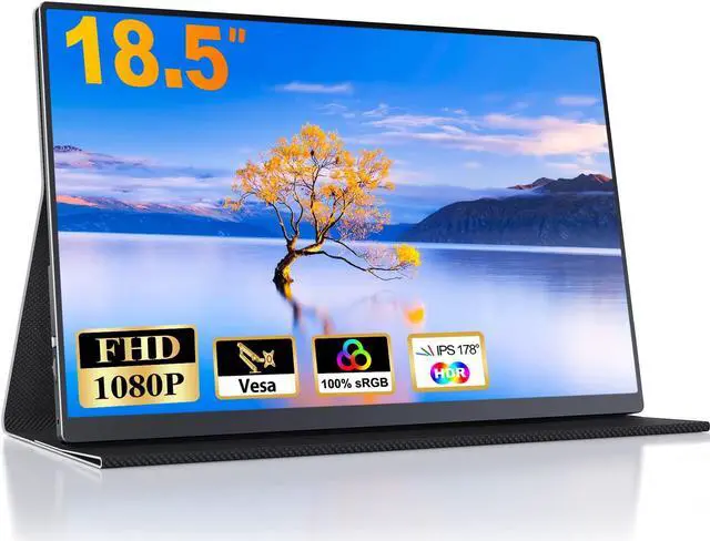 [1080P FHD IPS Screen] This 18.5" portable monitor will offer you more vivid colors and crisp images with the stunning 1920x1080 resolution. With the 2000:1 contrast ratio, 100% sRGB color gamut and 178 viewing angle, you'll have truly immersive viewing
