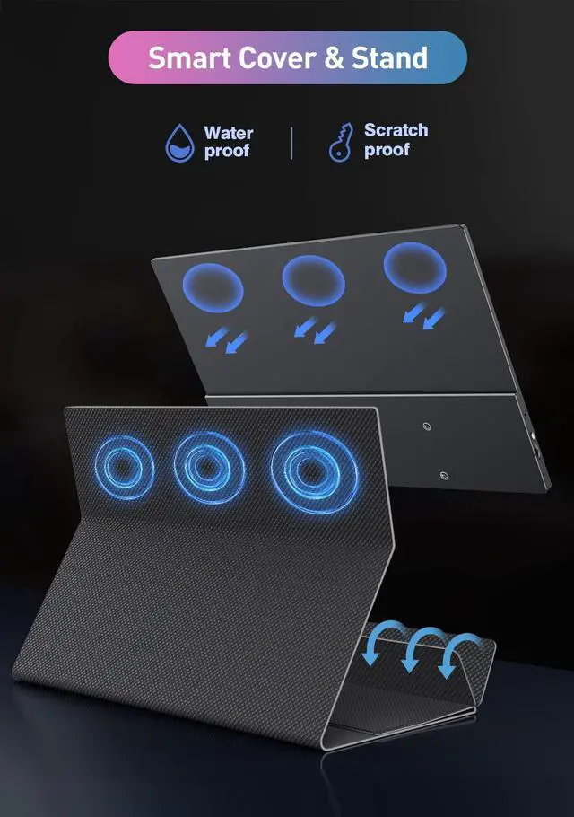 [Smart Case & VESA Mountable] The smart case made of PU magnetic material keeps the screen safe from scratches and it also doubles as a stand for the monitor at the same time. Standard 75x75 VESA holes on the back allows you to mount the monitor to