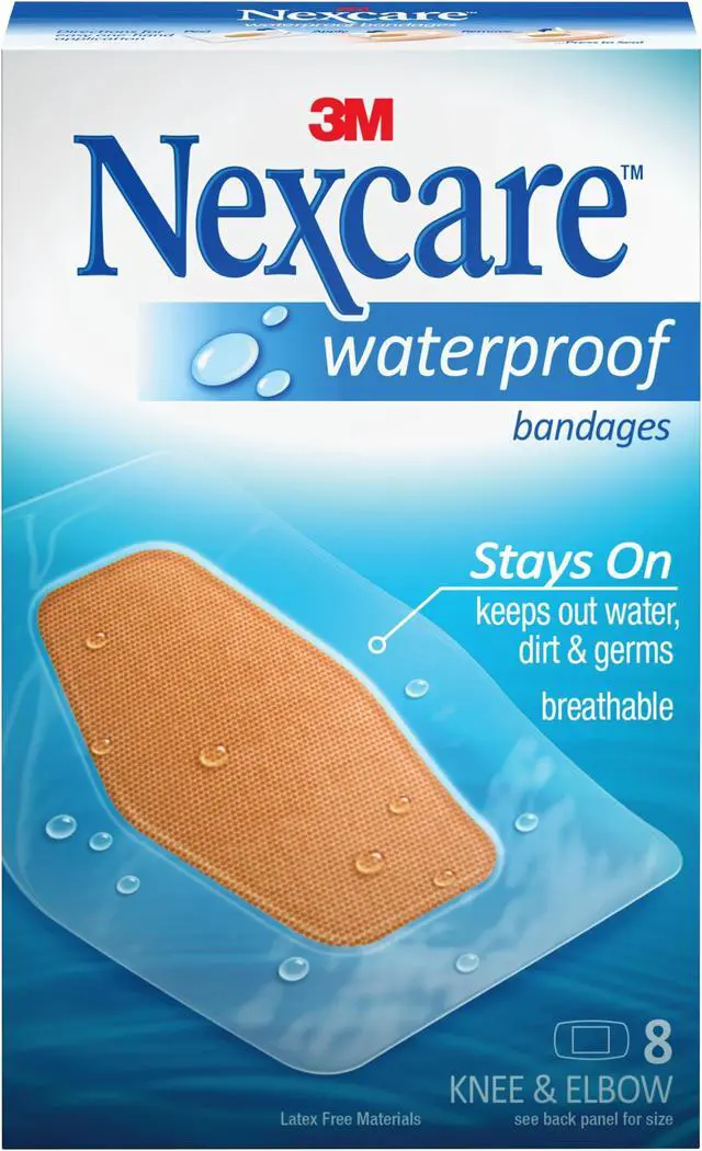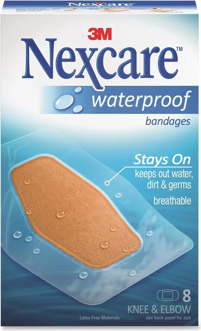 Knee/Elbow Bandages, Waterproof, 2-3/8"x3-1/2", 8/PK,Clear.