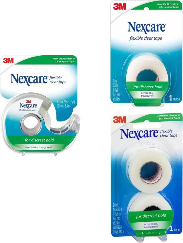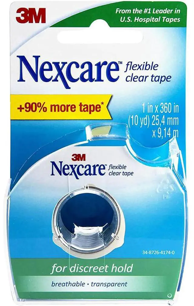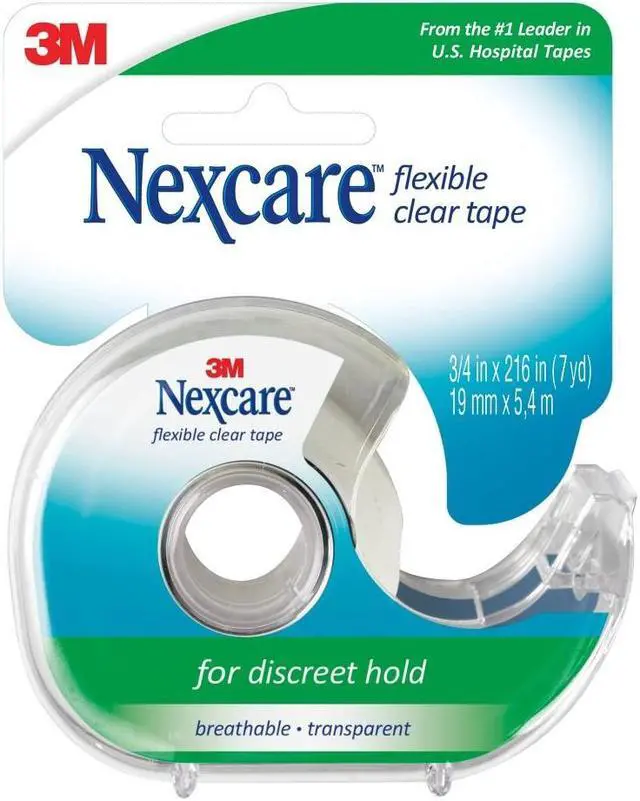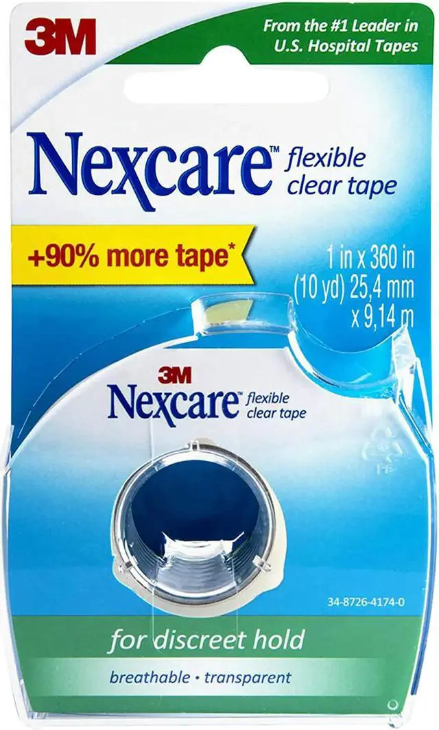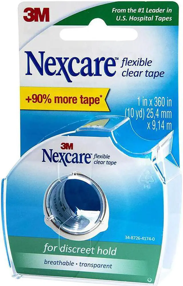 Flexible and stretchable. Long-lasting hold. Water resistant. Ideal for hard to tape areas. For taping dressings and medical devices in discreet areas. Proprietary technology provides a clear, hypoallergenic tape that flexes easily with your body. This is the same tape used in major U. S. hospitals. Breathable. Not made with natural rubber latex. Medium hold. 3/4 in x 252 in (7 yd).