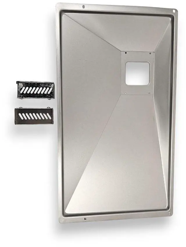 Grease Tray 25.59" (W) x 14.25" (H) x 1.5" (D). Fits 720-0830 720-0830A; Not stainless steel. just a thin sheet metal. Length 25-5/8. Width 14-3/8. Low end Depth 1-1/2