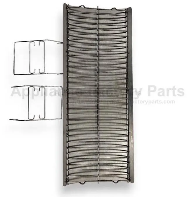 Main Charcoal Tray 26" (H) x 10.25" (W) x 0.75" (D). Fits 650-0002; Length 26in. Width 10-1/4. Depth 3/4. Hinge Length 7-1/8 slopped at the bottom. Width 4-7/8