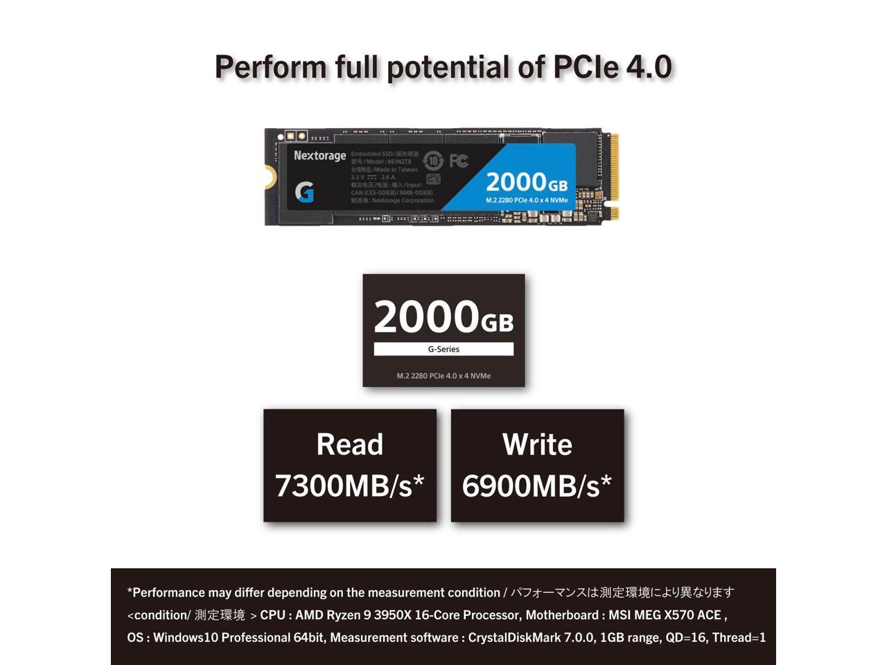 Nextorage Japan 2TB NVMe M.2 2280 PCIe Gen.4 Internal SSD Read Speed up to 7300MB/s Write Speed Up to 6900 MB/s (New G-Series). Read Speed up to 7300MB/s Write Speed Up to 6900 MB/s ( New G series)