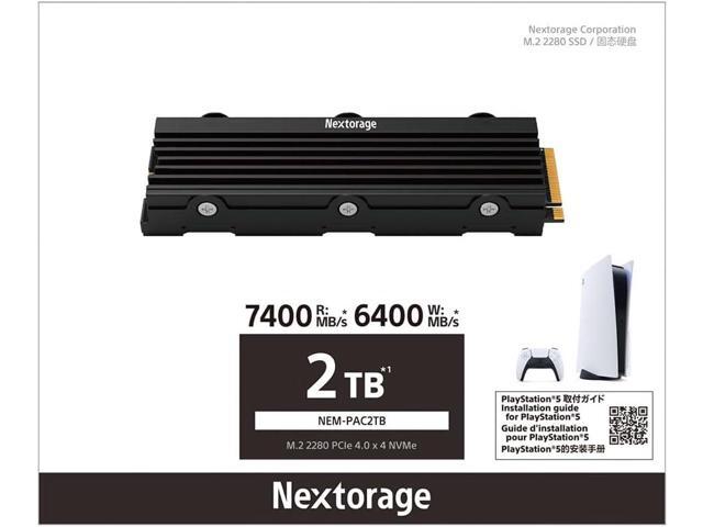 Nextorage Japan 2TB NEM-PAC PlayStation 5 SSD, M.2 NVMe with Heatsink, Up to 7400MB/s, comaptible with PlayStation 5 Consoles, PCIe Gen4 Internal Solid State Drive, NEM-PAC2TB/N SYM
