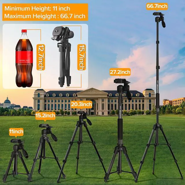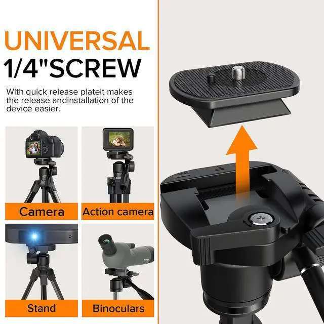 * Universal 1/4” screw can support most Canon Nikon Sony DSLR Camcorder and phones