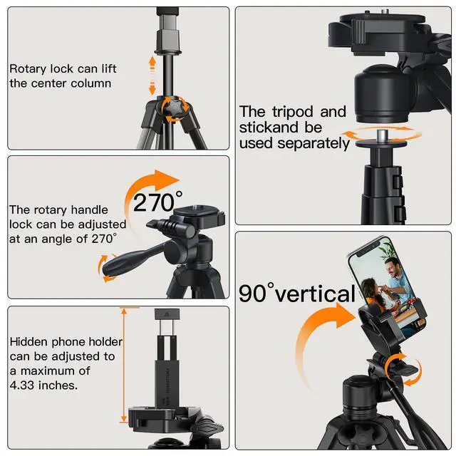 * 3-way swivel pan head can let you freely adjustable angles which allows you to take photos, videos, livestreams without limitations