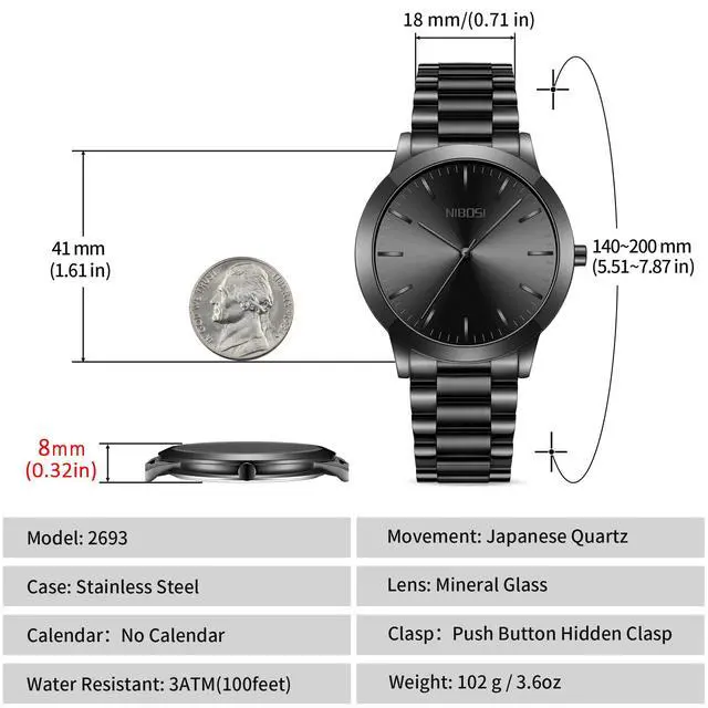 NIBOSI Black Men's Watches