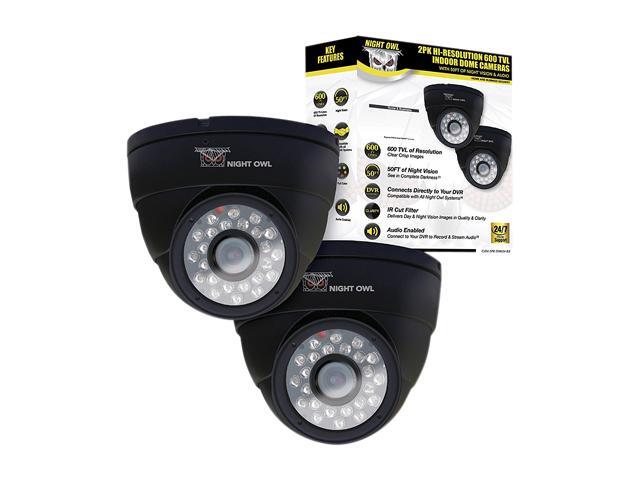 Night Owl 2-Pack 600 TVL Black Dome Cameras with Audio with 24 LEDs and 60ft of Cable Per Camera - Color Box