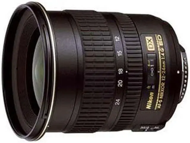 Enjoy a wider angle of view with the Nikon 12-24mm autofocus zoom lens, which is optimized for Nikon digital SLR cameras. The lens offers such features as a 2x zoom ratio, an exclusive Silent Wave Monitor that allows for accurate and quiet high-speed autofocusing, two Extra-Low Dispersion (ED) glass elements for minimized chromatic aberration, and three aspherical lens elements for low distortion. Nikon's D-type design, meanwhile, provides precise distant information for the flash and ambient light exposure processes. Perhaps the nicest feature, however, is the small image circle--the size of the image that's projected by the lens onto the sensor--which produces an optimal image from the center to the edge to the corner.