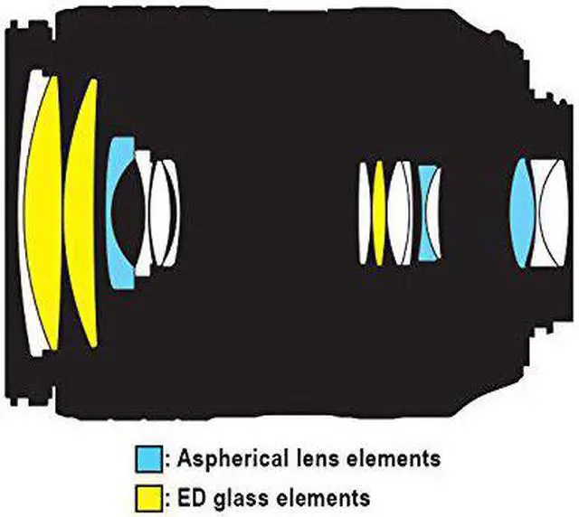 Aperture range from f/ 3.5 to f/22 Angle of view from 76 Degree to 5 Degree20' Maximum magnification of 0.32 x and a minimum focusing distance of 1.6 ' Lens construction of 16 elements in 12 groups Works on FX-format cameras in DX crop mode.