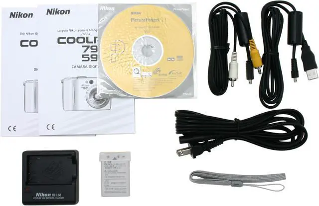 | Package Contents | Strap, USB cable, Audio Video cable, EN-EL5 Rechargeable Li-ion Battery, MH-61 Battery charger, PictureProject CD-ROM |