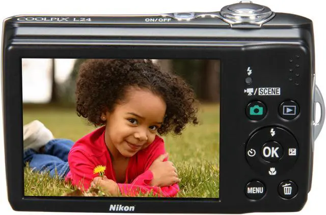 Take Great Photo with EaseThe COOLPIX L24 makes it a breeze to shoot quality photos and movies. It has a bright three-inch LCD so it’s easy to see the screen, shoot your picture, and share it with friends. Its three-way Vibration Reduction (VR) Image Stabilization System minimizes the streaky images that result from shots taken with shaky hands. Its motion detector identifies moving subjects and then adjusts the camera’s settings to catch the action, so you’re sure to capture a sandlot player’s game-saving catch or first bike ride.