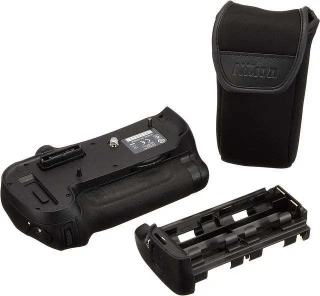 Supplied with MS-D12EN for EN-EL15 Rechargeable Li-ion Battery (sold separately) and MS-D12 for 8 AA batteries (not included); accepts 1.5V LR-6 (Alkaline), Lithium (FR6), Ni-MH (HR6) or Ni-Mn (ZR6).