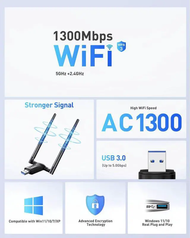 Our USB 3.0 Version wifi adapter achieves WPA3 security protocol, wifi adaptor not only improves propagation speed but also provides stronger network security performance protection, the pc wifi adapter effectively protecting your network privacy.